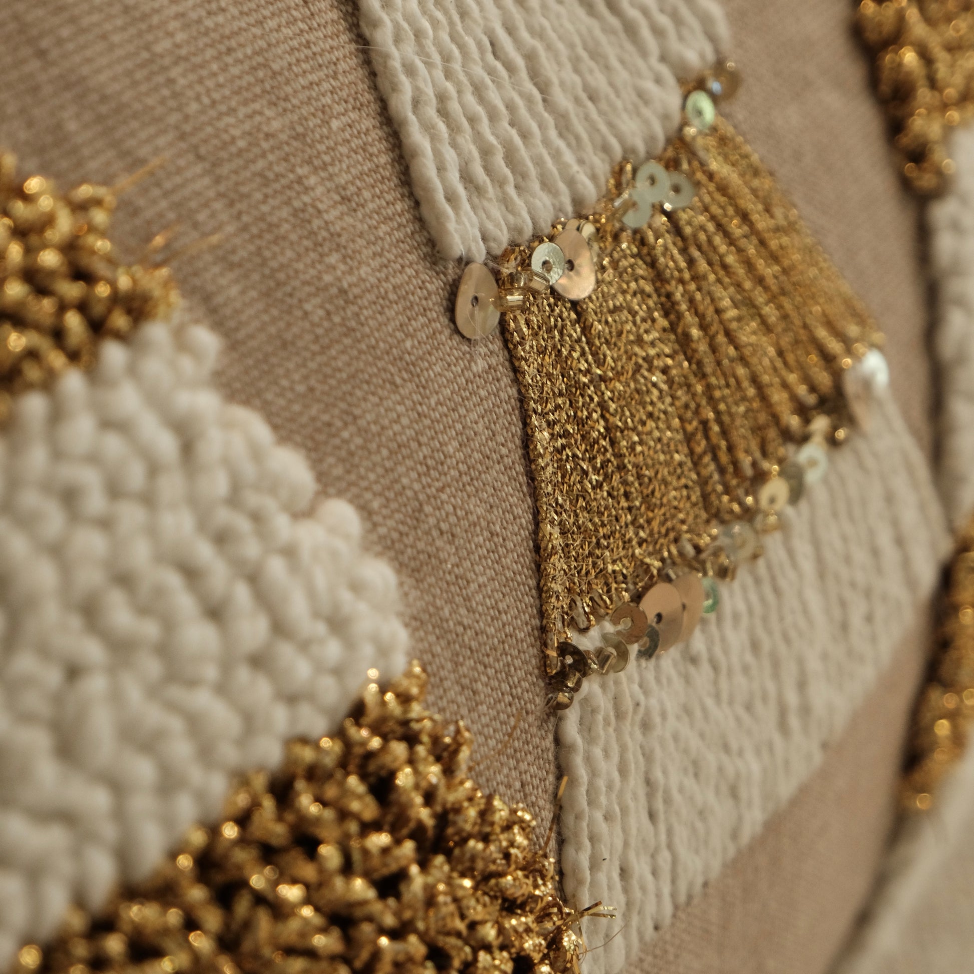 Cojín bordado con base de Algodón - Lurex con cremallera.